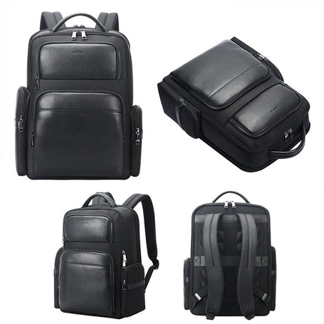 Large-capacity Business Laptop Backpack with Usb & Type-c Port - First-layer Cowhide Black