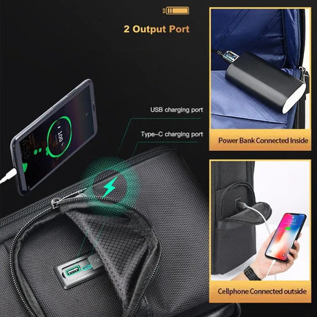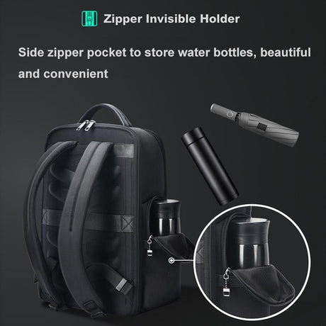 Large Capacity Waterproof Laptop Backpack with Usb Port for Business Travel - Black