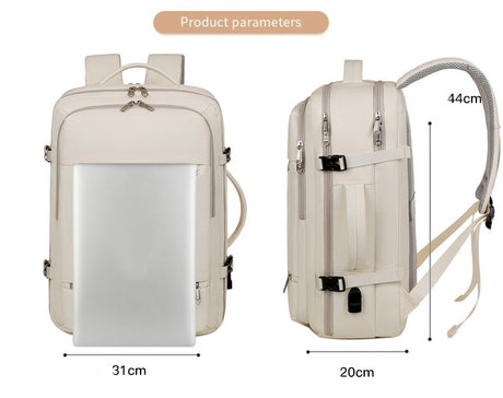 Large Capacity Travel Backpack with USB Charging Port - Beige