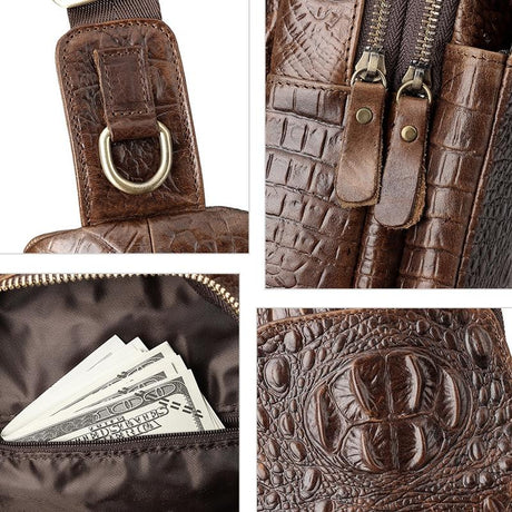 Leather Anti Theft Triangle Bag Secure Crossbody Chest Bag - Black