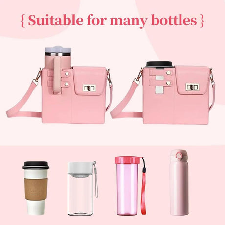 Leather Shoulder Bag For Water Bottles Fits Most Brands - Pink