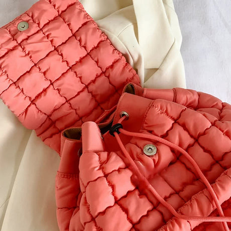 Lightweight Quilted Nylon Backpack with Adjustable Straps - Pink
