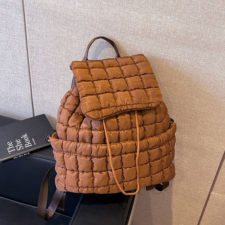 Lightweight Quilted Nylon Backpack with Adjustable Straps - Coffee
