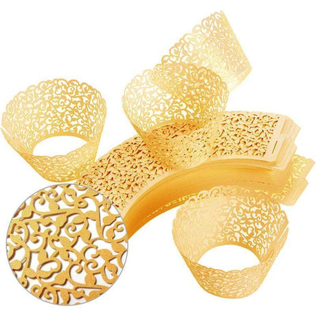 25pcs Laser Cut Cupcake Wrappers Wedding Party Baking Decorations in 8 Colours - Yellow