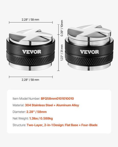 VEVOR 58mm Coffee Distributor 2-in-1 Adjustable Espresso Distributor for Home