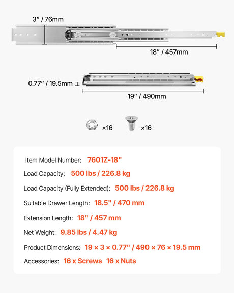 VEVOR 1 Pair 18-60 in Soft-Close Drawer Slides Ball Bearing Full Extension