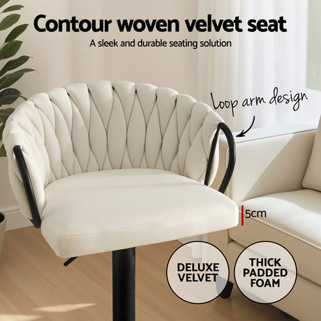 Artiss Bar Stool x2 Kitchen Dining Chair Counter Gaslift Woven Velvet Ivory
