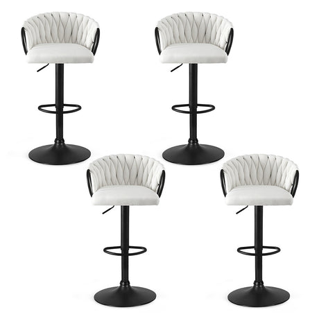 Artiss Bar Stool x4 Kitchen Dining Chair Counter Gaslift Woven Velvet Ivory