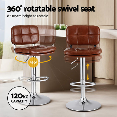 Artiss 2x Bar Stools Kitchen Swivel Gas Lift Counter Chair Tuft PU Leather Brown