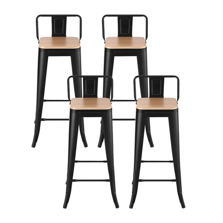 Artiss 4x Bar Stools Kitchen Counter High Chair Dining Stackable Metal Black