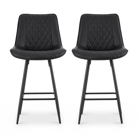 Artiss 2x Bar Stools Kitchen Dining Chair Counter Stool Diamond PU Leather Black