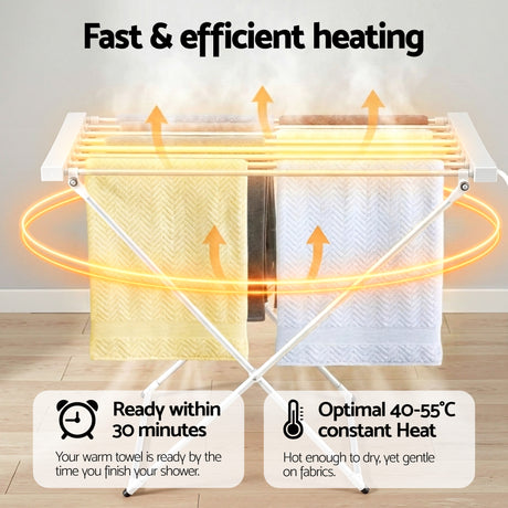 Devanti Heated Towel Rail Electric Clothes Airer Foldable Drying Rack 8 Bars