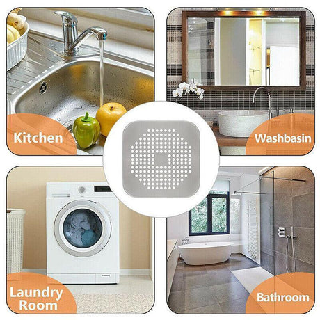 2X Square Drain Cover For Shower Drain Hair Catcher Flat Silicone Plug For Bath - White