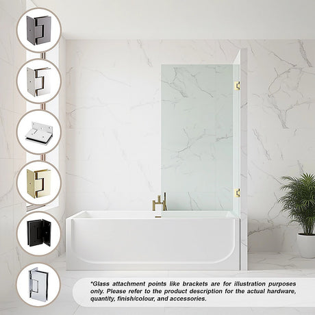 90cm Frameless Swing Bath Screen with Brushed Gold Hardware
