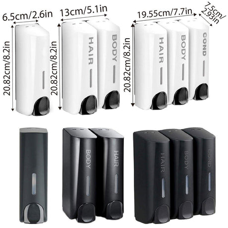 Hotel Wall Mounted Soap Dispenser Bathroom Shampoo Shower Gel Hand Soap Box - Black-Double