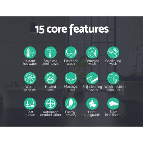 Cefito Electric Bidet Toilet Seat Cover Auto Smart Water Wash Dry Panel Control