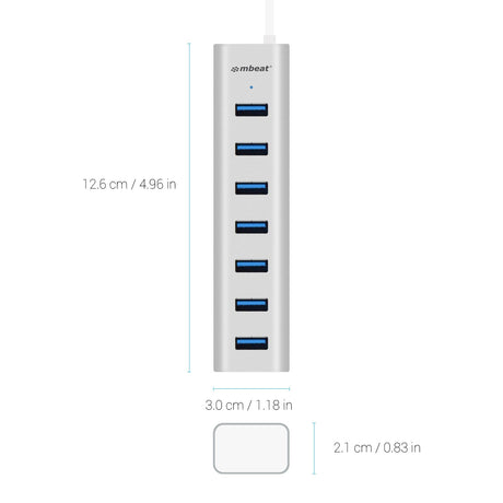 mbeat 7-Port USB 3.0 Aluminum Slim Hub With Power For PC and MAC