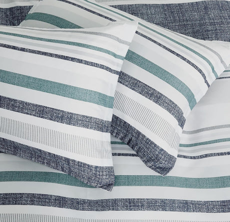 Ardor Frankie Blue Stripe Yarn Dyed Reversible Quilt Cover Set Queen