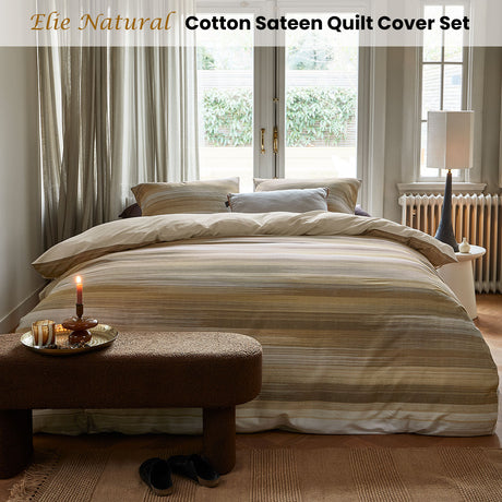Bedding House Elie Natural Cotton Sateen Quilt Cover Set Queen