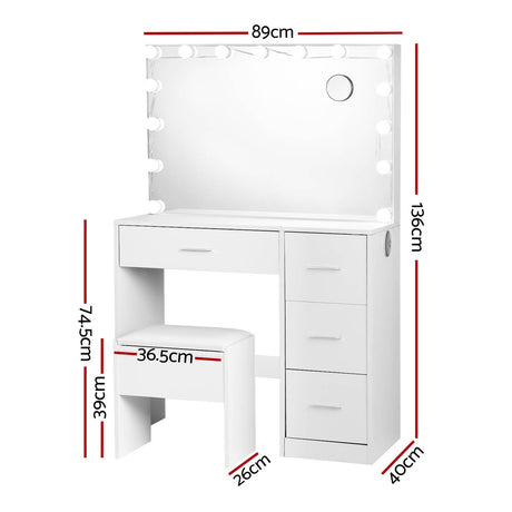 Artiss Dressing Table Set Stool 10 Led Bulbs White Dylan