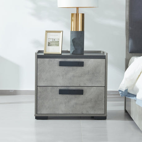 Bedside Table with 2 Storage Drawers MDF Combination of Black & Cement Colour Nightstand