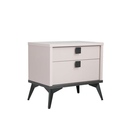 Bedside Table Grey Colour With 2 Drawers Night Stand Solid Wood Metal Handles