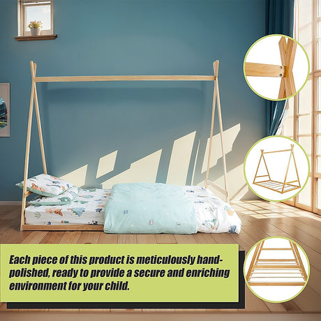 Kids Tent Montessori Toddler Floor Bed Wooden Bedframe
