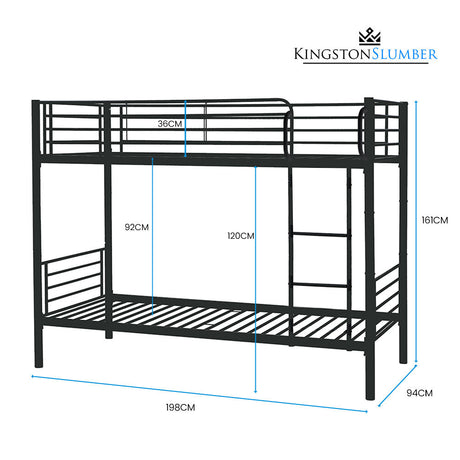 Kingston Slumber 2in1 Single Metal Bunk Bed Frame, with Modular Design, Dark Matte Grey