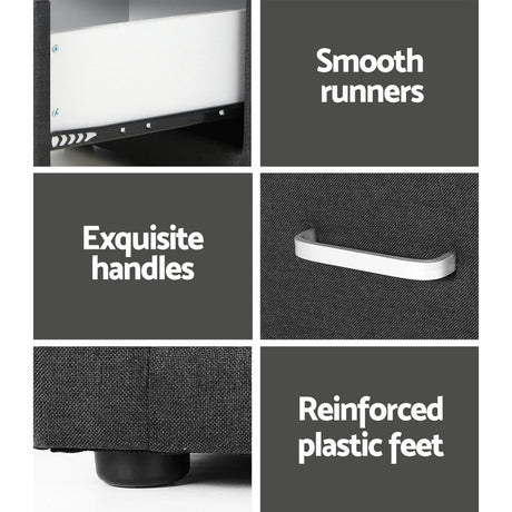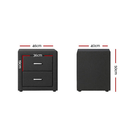 Artiss Bedside Table 2 Drawers Fabric - CADEN Charcoal