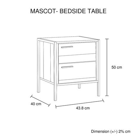 Bedside Table 2 drawers Night Stand Particle Board Construction in Oak Colour