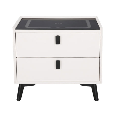Artiss Smart Bedside Table 2 Drawers with Wireless Charging Ports LED White AIKA