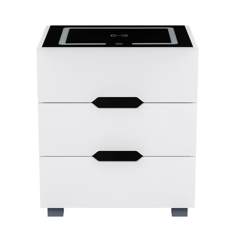 Artiss Smart Bedside Table 3 Drawers with Wireless Charging Ports LED White ADAD