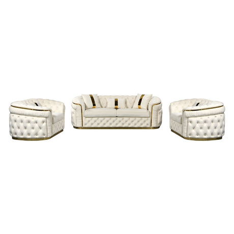 3-1-1 Seater Sofa Set Beige Velvet Fabric Solid Wood construction Gold Stainless Steel Trim