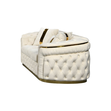 2 Seater Sofa Beige Velvet Fabric Solid Wood construction Gold Stainless Steel Trim