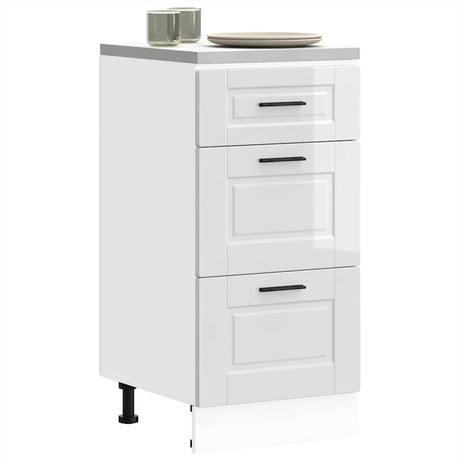 Kitchen Base Cabinet "Porto" High Gloss White Engineered Wood
