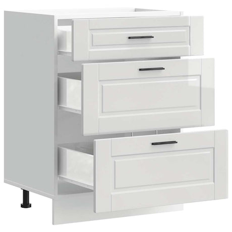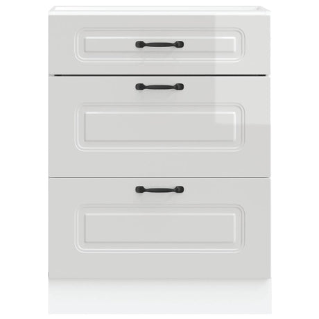 Kitchen Base Cabinet "Kalmar" High Gloss White Engineered Wood