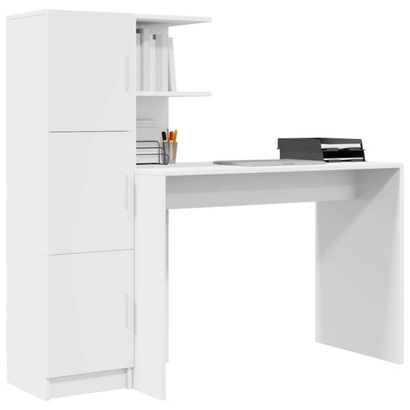 Desk with Shelf White 138.5 x 55 x 143 cm Engineered wood