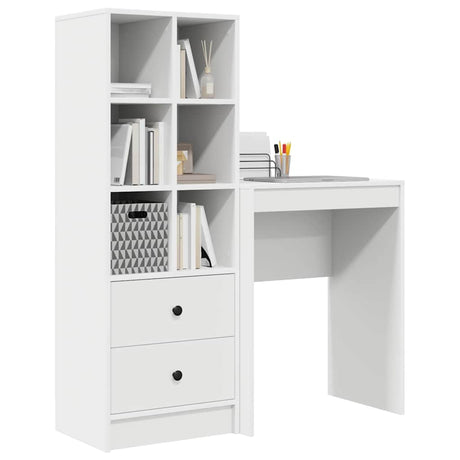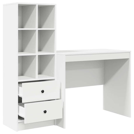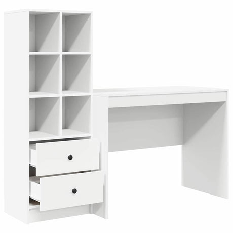 Desk with Storage with Drawer 2 pcs White Engineered wood