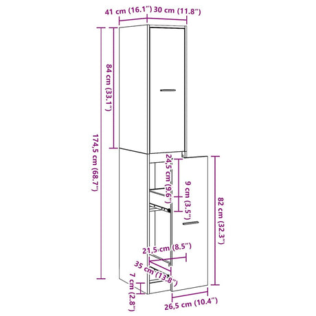 Apothecary Cabinet Black oak 30 x 41 x 174.5 cm Engineered wood