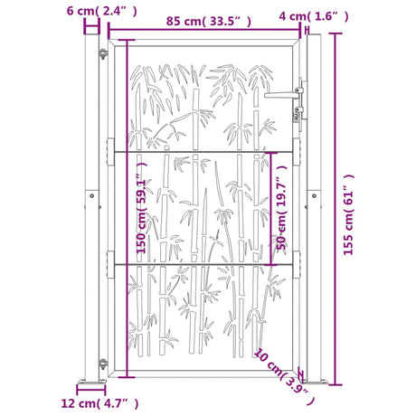 Garden Gate Anthracite 105x155 cm Steel Bamboo Design