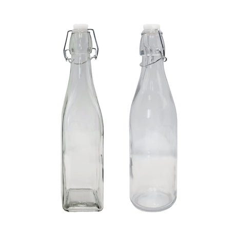 bulk 24 Clear Glass Bottle w Clip Lid 500ml 2 Asst 27cm