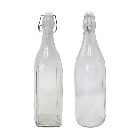 bulk 12 Clear Glass Bottle w Clip Lid 1Lt 2 Asst 32cm
