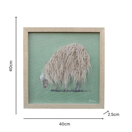 Long Haired Hand-Made Sheep Framed Canvas Wall Art 40cm