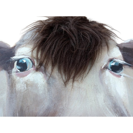 Curious Cow w Artificial Hair Framed Canvas Wall Art 60cm