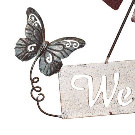Hanging Welcome Windmill w Bell + Butterflies 88cm