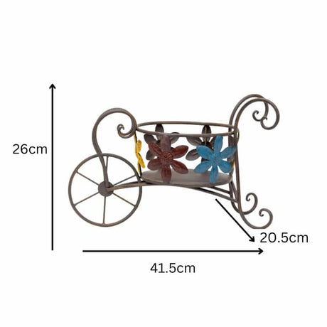 Antique Wheelbarrow w Flower Design Pot Planter 41cm