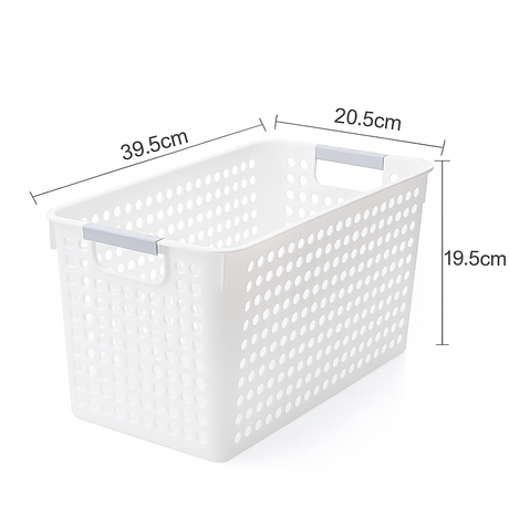 16x Premium Plastic Storage Baskets Bulk w/ Grip Handles 39.5*20.5*19.5cm