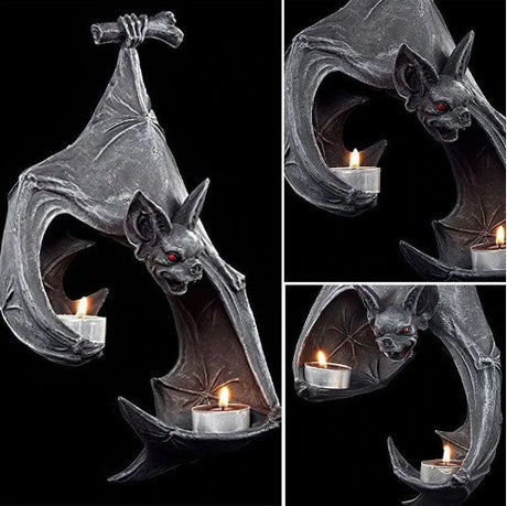 Gothic Bat Wall Tealight Holder - Resin Decor for Spooky Ambiance (16.5x12x22 cm)
