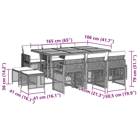 11 Piece Garden Dining Set with Cushions Beige Poly Rattan