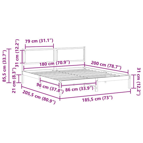 Bed Frame with Headboard Dark Grey 180 x 200 cm Solid Pine Wood